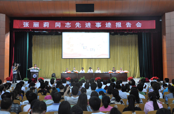报告会上,佳木斯市第十九中学副校长靳艳萍,佳木斯市第十九中学丽莉班学生张佳岩,哈医大附属第一医院重症医学科主任赵鸣雁,张丽莉老师爱人、佳木斯市郊区林业局造林工作站站员李梓烨,黑龙江人民广播电台记者邹韵分别以《师爱点亮人生》、《一位了不起的患者》、《丽莉,我们等你回来》、《你就是我的唯一》、《一次终身难忘的采访》为题,以平实的讲述,真挚的感情,把张丽莉老师的平素生活、危难时刻的大义大勇、已经这背后最真实的人格光辉、崇高精神,娓娓道来。现场听众不断被“最美女教师”的先进事迹感染到泪水涟涟,一阵阵掌声响彻报告会大厅。