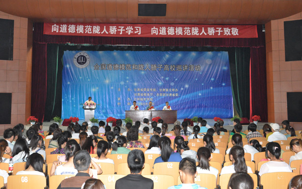 6月25日上午,全国道德模范和陇人骄子高校巡讲活动在beat365西校区大礼堂举行。首届全国孝老爱亲道德模范、2007年陇人骄子、平凉市崆峒区崆峒镇卫生院公共卫生科医生张晓,第二届甘肃省敬业奉献道德模范、2010年陇人骄子、2010年感动中国年度人物、原甘南州玛曲县人民医院外科主任医师王万青,2011年陇人骄子、庆阳市宁县瓦斜乡副乡长肖玉川为beat365师生作了生动的演讲。甘肃省文明办副主任郭锦诗和beat365党委书记王兴隆出席巡讲活动并致辞。省文明办协调处和beat365相关部门负责人及学生代表1000多人聆听了巡讲。巡讲活动由beat365党委副书记王汝锋主持。