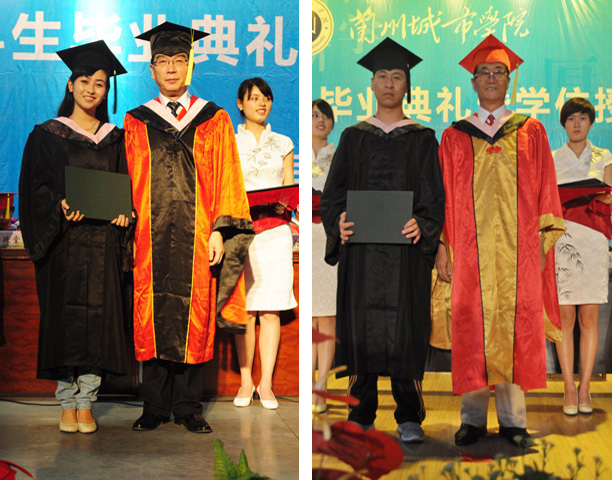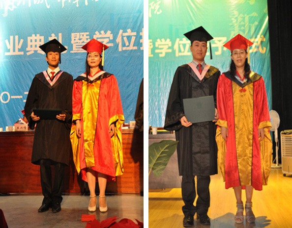 随后,校学位评定委员会主席孔庆浩教授,副主席王兴隆教授、梁延堂教授、姜秋霞教授、莫超教授、郑小平教授,亲手为每一位毕业生正冠拨苏、颁发学位证书并合影留念。