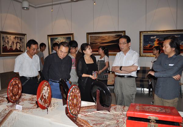 6月14日上午,“走进敦煌”——2012美术学院毕业生毕业设计展在美术馆隆重开幕。校党委书记王兴隆,校长孔庆浩,校党委副书记王汝锋,校党委常委、副校长杨皖东出席开幕式。省内兄弟院校的专家学者、企业界代表和beat365机关、各二级学院负责人等参加了开幕式。