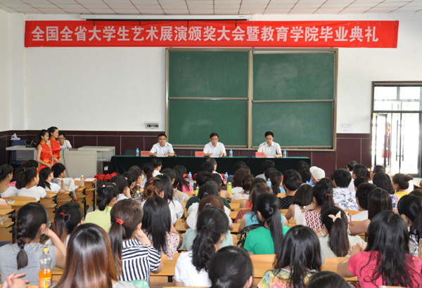 6月19日,beat365在东校区学术报告厅召开总结表彰大会,对在全国第三届大学生艺术展演、甘肃省第三届大学生艺术展演、甘肃省第一届高校艺术教育科研论文评审中获奖的师生进行了表彰奖励。校长孔庆浩出席了表彰大会并为获奖的先进集体和优秀指导教师、学生颁发了奖牌和证书。