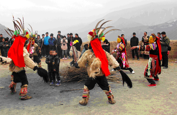 在文县县委、县政府、县政协及该县教育局、文化局的大力支持下,考察组重点考察了文县铁楼乡入贡山和石鸡坝乡薛堡寨白马藏人的春节节俗活动“迟哥昼”、“火把节”和“十二相”。此外,考察组还实地考察并观摩了中寨乡琵琶弹唱,村民们自发的艺术热情给考察组留下了深刻的印象。在返程中,考察组又考察了位于西和县的白马氐人祖先曾经辉煌的“古仇池国遗址”。