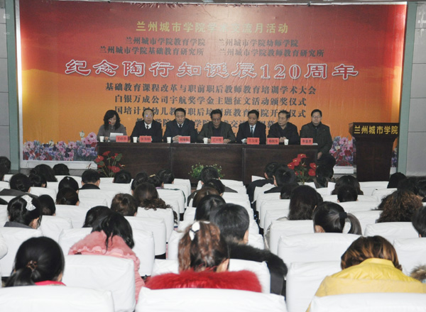 今年是我国伟大的人民教育家陶行知诞辰120周年,为了学习研究陶行知教育思想,弘扬陶行知思想和精神,学习陶行知先生的“普及教育、全面教育、创造教育、生活教育、终身教育”理念,不断探索中国现代化教育的发展道路,深入推进院所科研、学术水平的发展,促进教师教育课程改革,提高基础教育和教师教育质量。12月27日下午,由教育学院、幼儿师范学院、基础教育研究所、教师教育研究所联合举办的纪念陶行知诞辰120周年基础教育课程改革与职前职后教师教育培训主题学术报告会在校本部第一学术报告厅举行。校党委书记王兴隆,校党委副书记王汝锋,校党委常委、副校长刘举科、杨皖东,兰州市第三十四中学、beat365官方网站实验中学校长张亭等出席纪念活动。