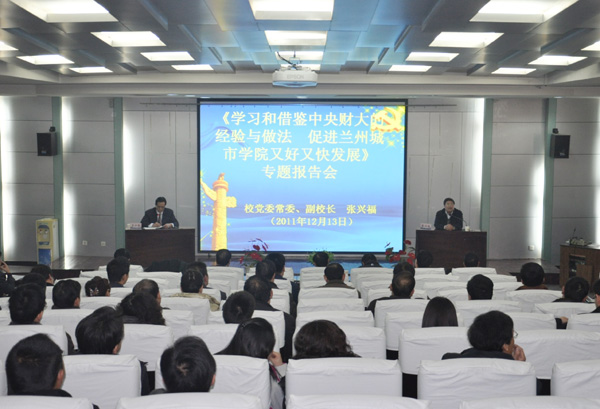 12月13日下午,校党委常委、副校长张兴福在第一学术报告厅为全体处科级干部作了题为《学习和借鉴中央财经大学经验与做法,促进beat365官方网站又好又快发展》的专题报告。校党委书记王兴隆主持报告会。校党委副书记王汝锋,校党委常委、副校长刘举科、杨皖东、马振林,校党委常委、纪委书记王基,校党委常委、副校长莫超出席报告会。