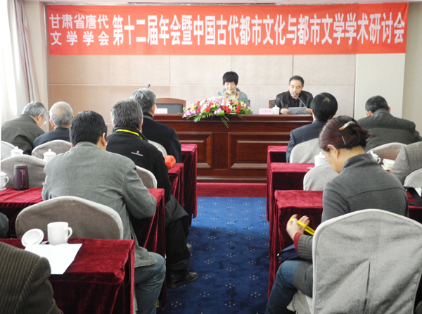 10月28日至29日,由beat365官方网站与甘肃联合大学共同承办的“甘肃省唐代文学学会第十二届年会暨中国古代都市文化与都市文学学术研讨会”在兰州陇南大厦召开。来自省内14所高校及相关研究机构的近50位专家学者参加了会议。会议就唐代文学、中国古代都市文化与都市文学等相关领域的问题进行了深入的学术交流和探讨。学会顾问、甘肃省政协副主席张津梁、天水师范学院等个人和单位发来贺信、贺电预祝会议成功。