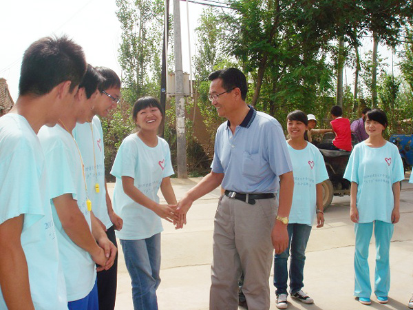 7月24日 ,校党委书记王兴隆在社会管理学院、校团委负责人的陪同下,来到定西市通渭县襄南乡文堡村,看望在这里开展暑期“三下乡”社会实践的队员们,并参加了捐赠仪式。他代表beat365官方网站全体师生表达了对文堡小学全体师生的诚挚慰问,并细心嘱咐实践小分队队员务必将实践工作做到实处,“蹲下来”与学生们真心交流。孩子们在捐赠仪式上领到了文具,露出了开心的笑脸。襄南乡学区马校长对beat365的捐赠和实践活动表达了真挚的谢意。