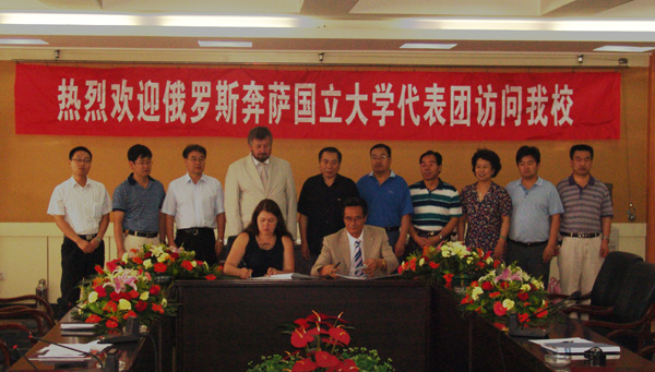 6月26日至28日,俄罗斯奔萨国立大学外事处处长、国际合作交流学院院长梅谢里科娃·奥尔伽女士和医学院院长梅特罗申·亚历山大一行来beat365访问,校党委书记王兴隆,校党委常委、副校长杨皖东与梅谢里科娃·奥尔伽女士一行进行了亲切会谈。双方就联合申办孔子学院、学生互换、学分互认和定期师资交流等项目进行了广泛深入的探讨与协商,并在2007年9月双方签署的《关于beat365官方网站与奔萨国立大学联合申办孔子学院及建立友好合作关系备忘录》的基础上,于6月28日上午正式签订《中国beat365官方网站与俄罗斯奔萨国立大学联合申办孔子学院意向书》,孔子学院办学地点拟设立在俄罗斯奔萨国立大学。