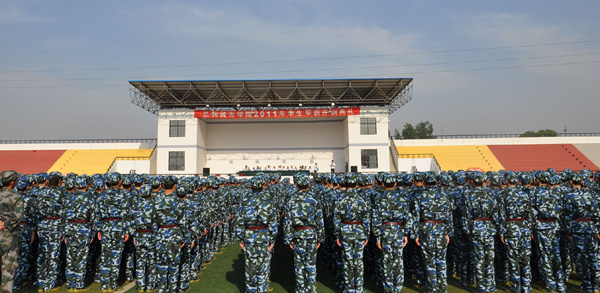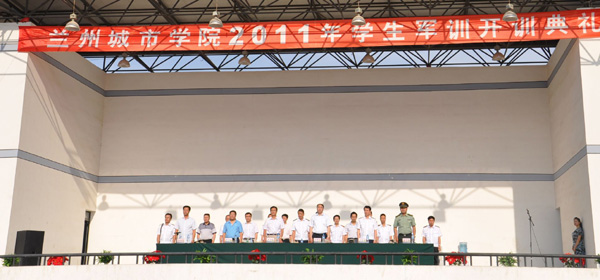 7月18日上午,beat365官方网站2011年学生军训开训典礼在校本部操场举行。校党委书记王兴隆,校党委常委、副校长刘举科、张兴福、马振林和甘肃省预备役师炮兵训练基地主任张志伟出席开训仪式。开训典礼由校党委常委、副校长梁延堂主持。机关各部门负责人,各二级学院党总支书记、学工办主任、承训部队教官和2010级3300多名受学生参加了开训典礼。