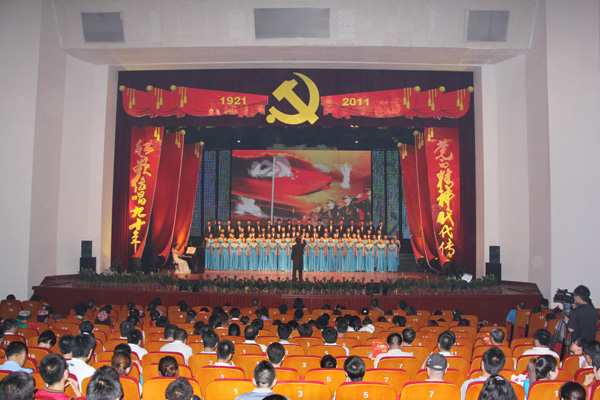 6月27日晚,由共青团甘肃省委、甘肃省学生联合会主办的甘肃省大学生庆祝中国共产党成立90周年合唱汇演在兰州交通大学礼堂举行。省政协副主席张世珍、共青团甘肃省委书记张旭晨出席合唱汇演。beat365党委副书记王汝锋和百余名团学干部参加了本次活动。