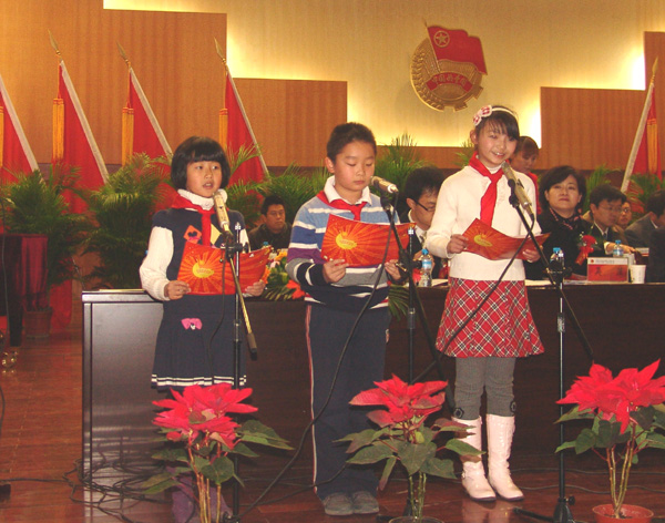 伴随着庄严的国歌,“双代会”拉开了帷幕。三名少先队员代表向大会献辞,西北师范大学团委书记雷鸣代表兄弟院校致贺词。共青团省委甘肃书记张旭晨、beat365党委书记王兴隆分别发表讲话。