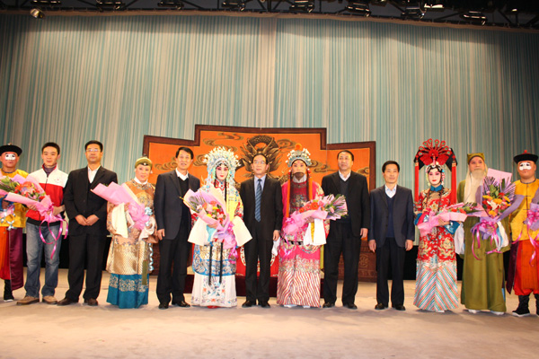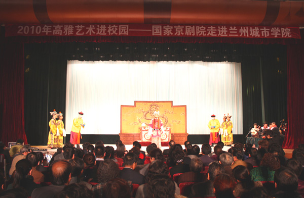 演出开始前,国家一级演员、京剧表演艺术家郑岩为师生们作了简明生动的京剧知识讲座,他从京剧的起源、发展以及如何欣赏京剧等方面为大学生普及了京剧知识。随着优秀青年演员王好强以一身美猴王装扮亮相,京剧选段《闹天宫》拉开了本场演出的帷幕,王好强漂亮的武生功夫、幽默的神态、丰富的表情,神行相趣的动作,不时赢得全场喝彩。著名京剧表演艺术家于魁智也带来了自己的拿手好戏《大登殿》,他扮演的薛平贵一登场就赢得了观众们阵阵掌声和喝彩声,而李胜素扮演的王宝钏以其端庄大气、优美的唱腔给观众留下了深刻印象,这两位京剧界“黄金搭档”的联袂演出让观众体味到了中国传统文化的无穷魅力。演出结束后,学生和代表向演员们敬献了鲜花,校领导上台与演员们握手致谢并合影留念。