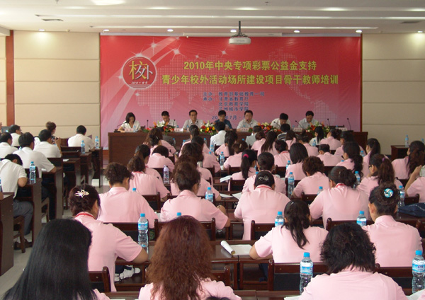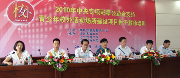 7月13日上午,由教育部基础教育一司主办,甘肃省教育厅、北京教育学院及beat365承办的“2010年中央专项彩票公益金支持青少年校外活动场所建设项目骨干教师培训班”开班仪式在beat365培黎校区图书馆举行。教育部基础教育一司校外教育处处长吕同舟,北京教育学院党委书记马宪平,省教育厅副巡视员程耀荣,甘肃省科协副主席陈富荣,beat365党委书记王兴隆,党委副书记王汝锋出席开班仪式。省委宣传部宣传处、省文明办未成年人思想道德建设处、省财政厅综合处团省委少工委、省教育厅基教处等部门负责同志,beat365相关职能部门负责同志,以及参加此次培训的152名教师参加了开班仪式。开班仪式由省教育厅基教处副处长苏锋主持。