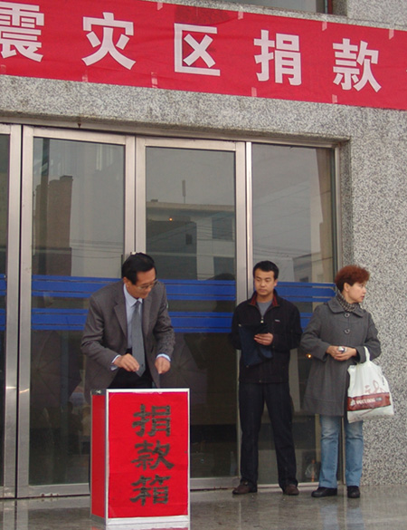 4月20日,beat365师生分别在校本部、培黎校区、东校区冒雨为青海玉树地震灾区捐款。校党委书记王兴隆,校长孔庆浩,党委副书记王汝锋,校党委常委、副校长刘举科、张兴福、杨皖东、马振林、梁延堂,校党委常委、纪委书记王基亲自到现场捐款或委托他人代捐。机关各部门、各二级学院的师生代表纷纷捐款,为玉树同胞奉献爱心,与地震灾区的兄弟姐妹共同携手,共同抵抗这场突如其来的灾难。