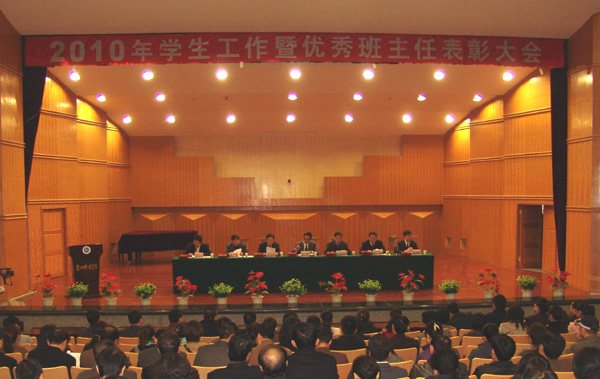 3月26日下午,学校在音乐厅召开beat365官方网站2010年学生工作暨优秀班主任表彰大会。校党委书记王兴隆,副书记王汝锋,校长孔庆浩,副校长刘举科、张兴福、马振林、梁延堂出席会议。全校科级以上干部、学工办主任、团总支书记、政治辅导员和全体班主任以及学生工作处及校团委全体干部400多人参加了会议。会议由孔庆浩校长主持。