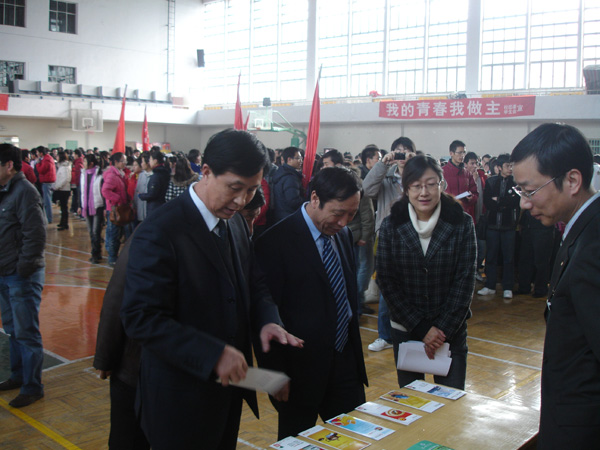 为了进一步服务大学生就业创业,满足用人单位对优秀人才的需求,促进学校、毕业生、用人单位之间的交流和沟通,开创beat365具有共青团特色的大学生就业创业工作机制。在校党委、团省委及招生就业处等部门的大力支持配合下,校团委、招生就业处、学生会联合组织的“共青团服务大学生就业创业活动——2010届毕业生校园招聘会”于12月11日下午在beat365西校区体育馆内隆重举行。校党委副书记王汝峰、副校长马振林、团省委学校部副部长杨成以及校团委、招生就业处、学生处领导及全校一千余名毕业生参加了本次招聘会。