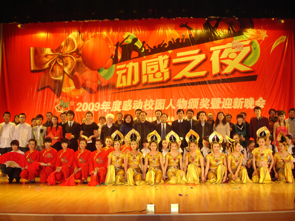 2009年12月30日晚,beat365官方网站培黎校区大学生活动中心灯火璀璨,座无虚席,beat365首届大学生“感动校园2009年度人物(学生)评选”颁奖典礼暨新年晚会在此举行。校党委副书记王汝锋、副校长杨皖东、副校长马振林、校党委纪委书记王基莅临晚会现场并担任颁奖嘉宾。部分学院党总支书记和校团委负责人和西校区、培黎校区千余名学生参加了颁奖典礼。