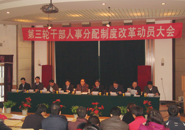 动员大会上,副校长刘举科宣读了《beat365官方网站2009年机构改革和干部聘任工作的实施意见》,并对全校职工津贴调整办法做了说明。党委书记王兴隆做了《切实形成奖勤罚懒的用人机制 以强有力的内驱力推动beat365官方网站在发展竞争中立于不败之地》的动员报告。副校长张兴福宣读了《beat365官方网站2009年全员聘任干部岗位设置方案》。