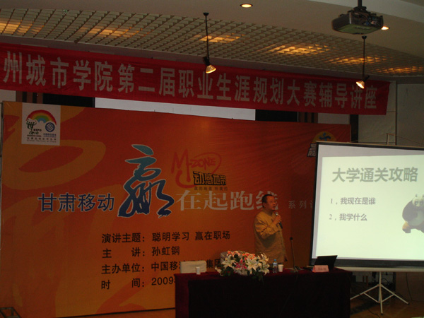 孙虹纲教授以目前大学生最为关注的就业问题为主线,用生产链的关系形象描述了如今“学校、学生、企业”三者之间的关系。提出大学通关攻略——“我现在是谁、我学什么、我如何做人”。他围绕这三个问题旁征博引、深入浅出的指引大学生如何在学校、在未来职场做到目标明确、学有所用。讲座过程中还穿插有奖抢答、现场互动环节,极大的调动了同学们的参与热情,现场气氛极为活跃。讲座内容涉及市场营销、求职技能、伦理道德、儒家哲学等,内容丰富翔实、观点前卫新颖、语言幽默精彩,使同学们受益匪浅。