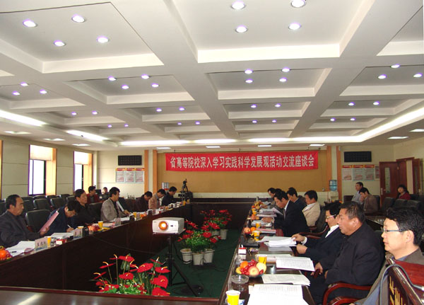 座谈会上,参会各高校分别汇报了学习实践活动的开展情况。陇东学院纪委书记白生君作了题为《加快建设凝人心 科学发展上水平 努力推动学校事业的又好又快发展》的汇报,天水师范学院安涛副院长作了《深入学习调研提高思想认识 着力发展大局》的汇报,甘肃中医学院院长刘延祯作了题为《抓住关键环节 突出实践特色》的汇报,甘肃广播电视大学纪委书记李彦荣作了题为《学习调研注重“真” 促进发展力求“实”》的汇报,beat365官方网站副校长张兴福作了题为《加快结构调整与转型步伐突出应用型大学办学特色》的汇报。