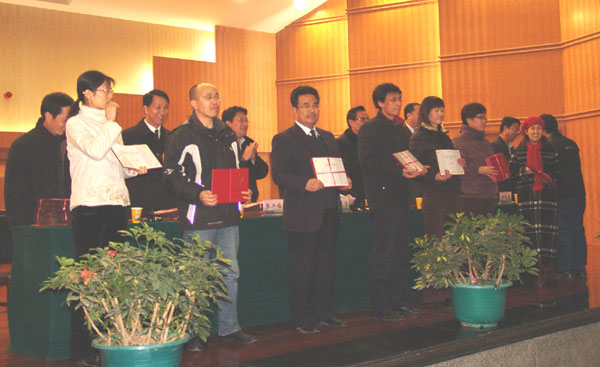 梁延堂副校长在会上宣读了“关于表彰奖励2008年甘肃省高等学校科技进步奖暨社科成果奖获奖成果的决定”、“关于表彰2008年beat365官方网站第三届学术交流月优秀组织奖的决定”、“关于表彰beat365官方网站学术交流月‘优秀论文’作者的决定”以及“关于表彰2008年秋季教育实习优秀实习组织工作者、优秀实习指导教师及优秀实习学生的决定”等表彰决定。在欢快的音乐声中,与会校领导为获得上述奖励的单位和个人颁奖。