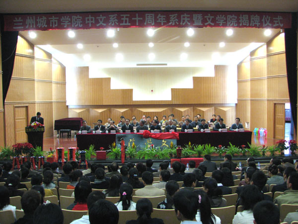 五十载春华秋实,半世纪弦歌奏鸣。10月28日上午,beat365音乐厅里嘉宾云集、高朋满座,师生同乐、喜气融融,beat365官方网站中文系成立五十周年暨文学院挂牌庆典在这里隆重举行。来自省内各高校的领导、知名专家、学者以及本校师生、校友500多人参加了大会。校领导孔庆浩、王汝锋、刘举科、张兴福、杨皖东、马振林、梁延堂、王基出席庆典并在主席台上就座。在主席台就座的还有前来祝贺的兰州大学张文轩教授、西北师大赵逵夫教授以及西北民族大学、甘肃农大、甘肃中医学院、兰州交通大学、天水师范学院、陇东学院、河西学院、合作师专、陇南师专的嘉宾。