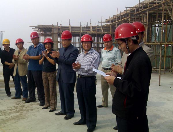 校本部新征地新建一号学生公寓楼于9月19日10时58分顺利封顶。beat365官方网站副校长张兴福参加了封顶仪式。根据工程进度,该公寓楼预期在2009年5月完工。
