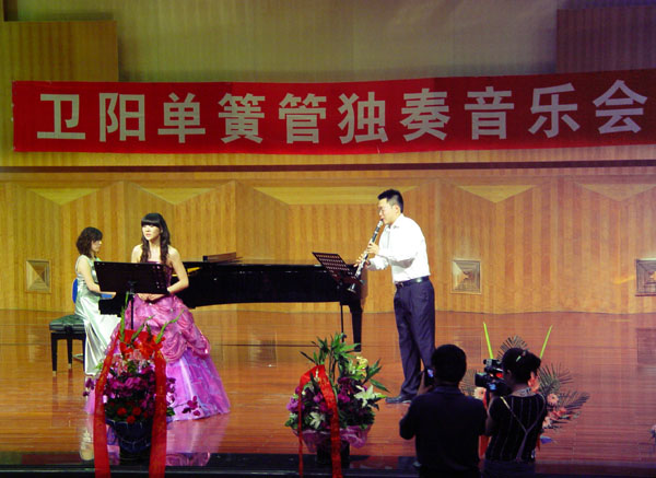 日前,音乐学院青年教师卫阳在学校音乐厅举办了单簧管独奏音乐会。音乐会演奏了不同时期、不同风格的单簧管经典曲目,作品曲目大、难度高,演奏者发挥表现的淋漓尽致,博得了观众的阵阵掌声。