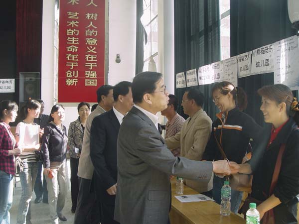 5月10日上午,由教育学院承办的beat365官方网站2008届学前教育专业毕业生“双选会”在学校东校区礼堂举行。孔庆浩校长、马振林副校长、梁延堂副校长应邀出席开幕式。学生处、教育学院相关负责同志参加,开幕式由教育学院党总支书记王志伟主持。来自省内外80余家用人单位参会,我院300多名毕业生前往 应聘。
