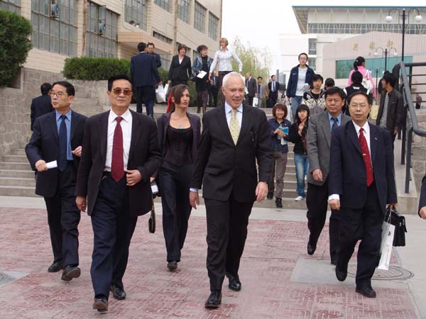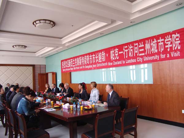 4月14日上午,新西兰克赖斯特彻奇市市长(Bob Parker)鲍勃·帕克一行8人在省人民政府外事办公室副主任费亚夫等人陪同下对beat365进行了友好访问。