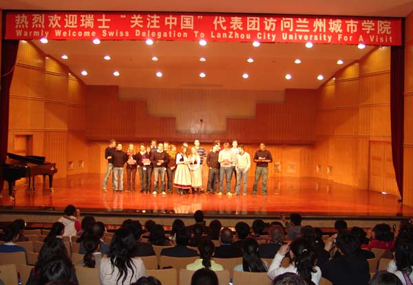 在学院本部,代表团师生参观了化学实验室、校史展览室,并观看了由音乐学院和教育学院共同表演的文艺节目,优雅经典、热情奔放的精彩演出博得了全场观众的阵阵掌声。我院外籍教师Amy女士也表演了刚劲流畅的武术——八门拳。瑞士代表团的学生被现场的热烈气氛所感动,登上舞台演唱了著名而古老的瑞士民歌。瑞士西北科技大学的校长激动地说:“太精彩了!太动人了!我还要来兰州,还要来beat365官方网站!”精彩的演出与两国师生间的交流让他情不自禁地流下了感动的泪水。