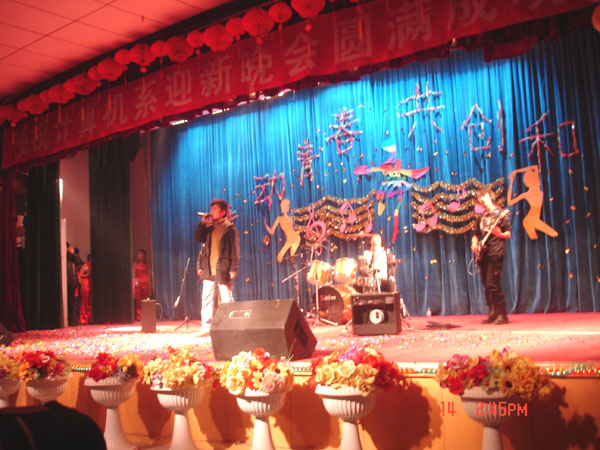 晚会在05级朱江等三名同学动感十足的乐队表演中拉开序幕,全场很快被欢快劲健的乐曲所感染。晚会分为上下两篇,上篇“舞动青春”,动感的音乐,摇曳的舞姿,街舞、爵士舞、民族舞、诗伴舞、独唱、扬琴独奏,形式多样,激情澎湃,青春夺目!下篇“共创和谐”,不仅有学生的演出,还有深受学生喜欢的张明老师倾情演唱,学工办老师与学生同台共演,把会场气氛推向高潮。