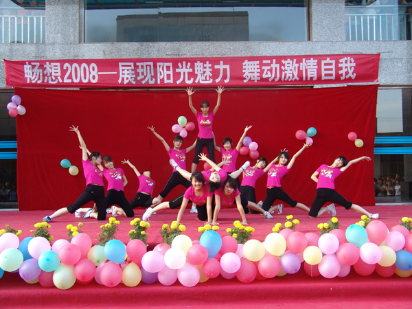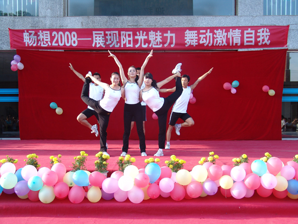 为活跃校园文体活动,丰富大学生的课余生活,贯彻“亿万青少年阳光健身工程”精神,挖掘和培养青少年学生良好的艺术潜质,由校团委、学生会举办的主题为“畅想2008—展现阳光魅力,舞动青春自我”“阳光杯”健美操大赛于6月28日下午在综合楼前举行。比赛由9个院系代表队组成,队员们经过精心的准备与艰苦的训练,为大家献上了一场充满青春活力的健美操表演。统一的服装,自信的脸庞,灿烂的笑容,彰显了beat365大学生的青春活力。最终,城管学院以《跳动的旋律》获得一等奖,数学系《自由的旋律》、传媒系《拉丁健美操》分别获二、三等奖;音乐学院的《火花》、体育系的《青春之光》、体育大三联队的《阳光宝贝》分别获表演一、二、三等奖。
