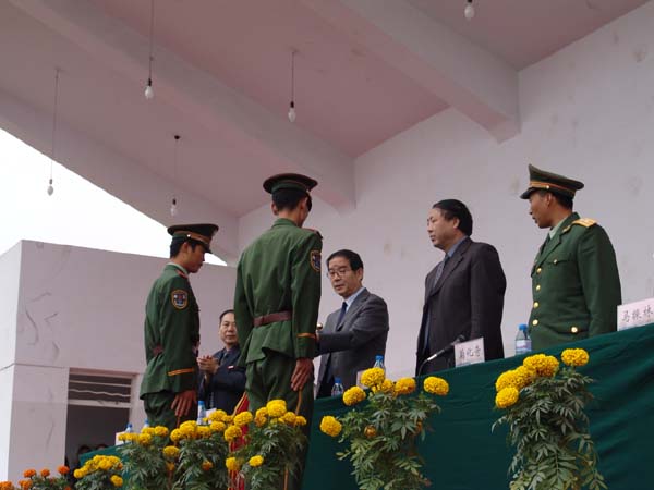 随后,孔庆浩院长向武警甘肃总队第三支队赠送锦旗。