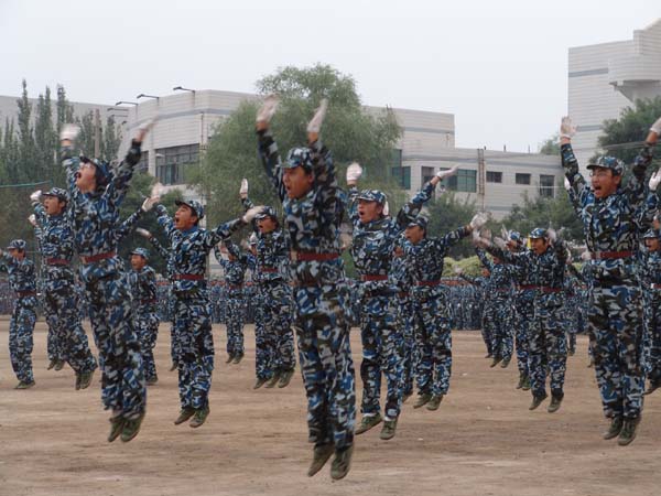 在雄壮宏伟的检阅进行曲中,马振林副院长代表学校党委和行政开始检阅受训队伍。受训同学们分别表演了男生拳术、女生队列、男生体能操,参训教官们进行了格斗表演,精彩的表演博得了热烈的掌声。