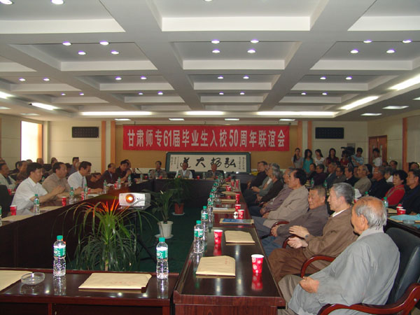 5月25日上午,甘肃师专(我院前身)61届毕业生进校50周年联谊会在综合教学楼会议室举行,院党委书记王兴隆、副书记王汝锋、副院长刘举科、马振林与甘肃师专56级110余名老校友欢聚一堂,共同回忆学校的发展历史。