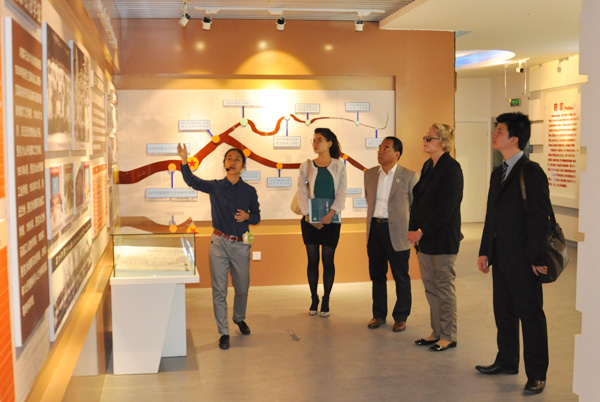座谈会前,代表团一行参观了校史馆、培黎展览馆,拜谒了路易·艾黎塑像。