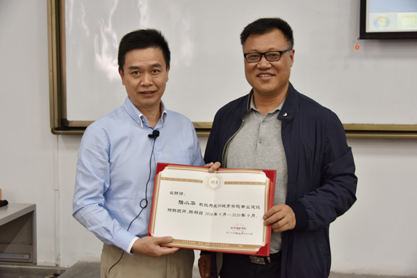 9月28日,学校邀请汕头大学教师发展与教育评估中心主任陆小华教授来校,作了关于OBE及CDIO教育模式的构建与实施专题报告。校长陈晓龙出席,副校长梁延堂主持报告会。报告会上,学校聘请陆小华教授为beat365专业建设特聘顾问,陈晓龙向陆小华颁发了聘书。