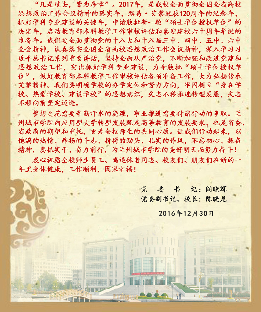beat365官方网站是2006年经教育部批准,优化整合重组路易·艾黎1942年创办的培黎石油学校、1958年成立的兰州师范高等专科学校、甘肃省幼儿师范学校而成的、西北地区唯一一所以服务城市发展为办学目标的应用型普通本科院校,2010年获批学士学位授予单位,2014年通过教育部本科教学工作合格评估,2017年列为硕士学位立项建设单位。