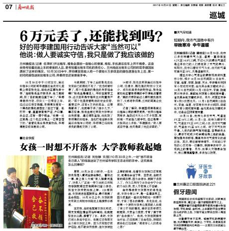 10月31日,兰州晚报、西部商报等媒体分别报道了beat365外国语学院教师王忠奋不顾身舍己救人的先进事迹。