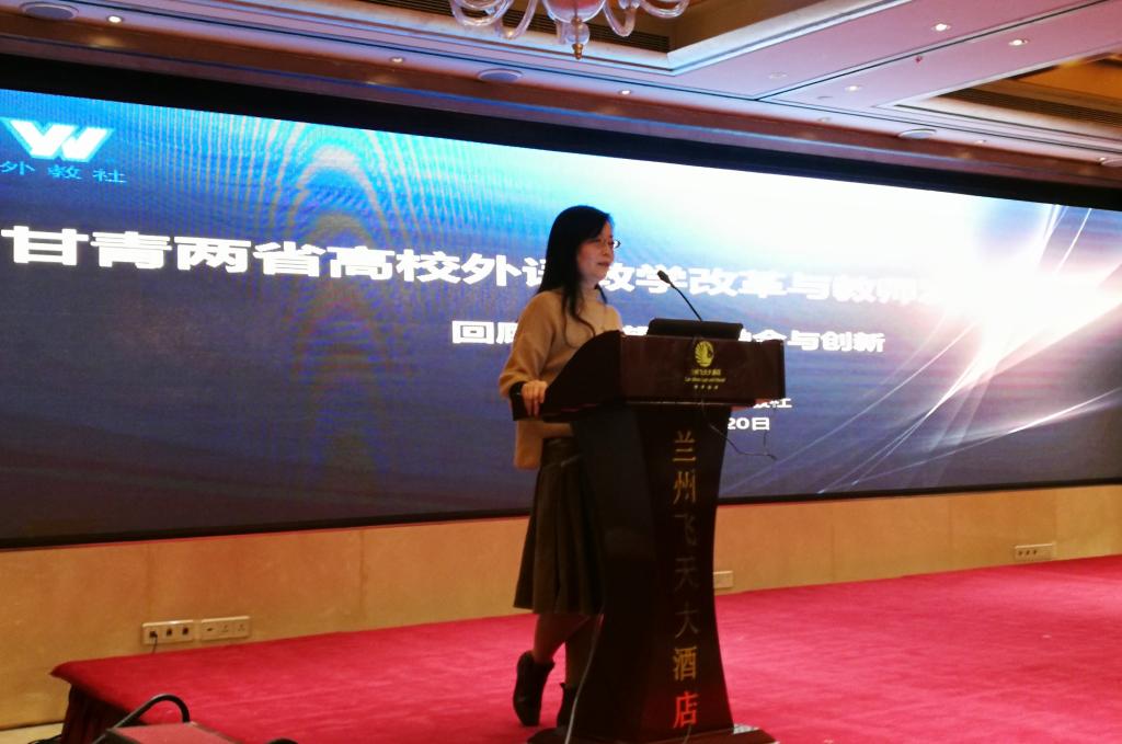 1月20日下午,由上海外语教育出版社主办的2018年甘青两省高校外语教学改革及教师发展研讨会在兰州举行。beat365副校长姜秋霞教授应邀出席会议并致辞。
