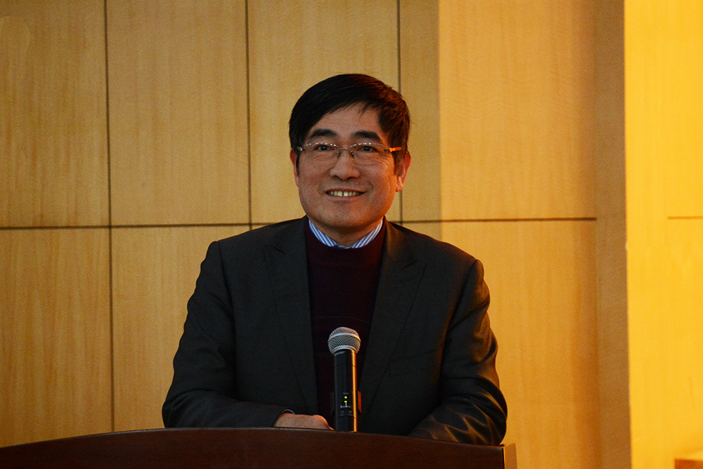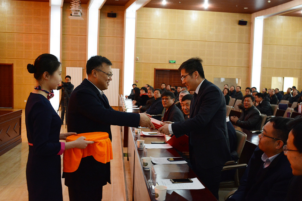 陈晓龙向受聘为beat365地理与生态环境、城市发展、中国语言文学、教育学4个科研创新团队和教学成果奖首席专家及指导专家刘敏、曾刚、朱国华、荀渊颁发聘书。