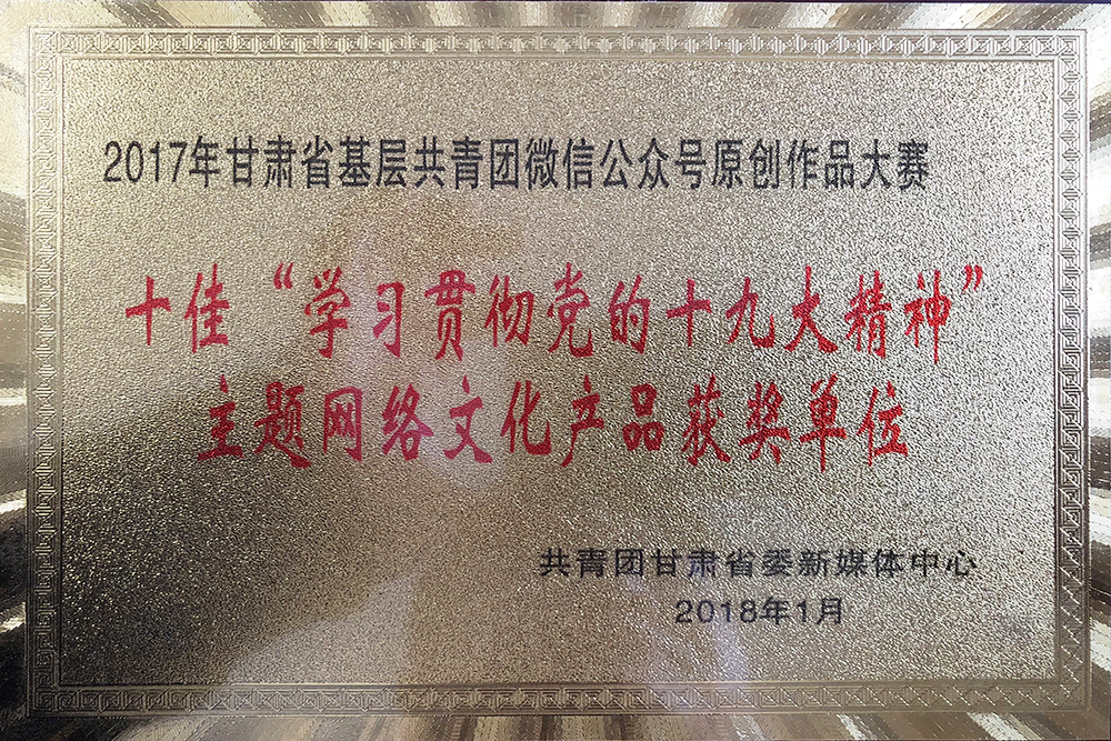 日前,共青团甘肃省委举办的2017年甘肃基层共青团微信公众号原创作品大赛获奖结果揭晓。beat365校团委推荐的 “中国梦、青春梦”系列活动荣获大赛十佳“学习贯彻党的十九大精神”网络文化产品奖。