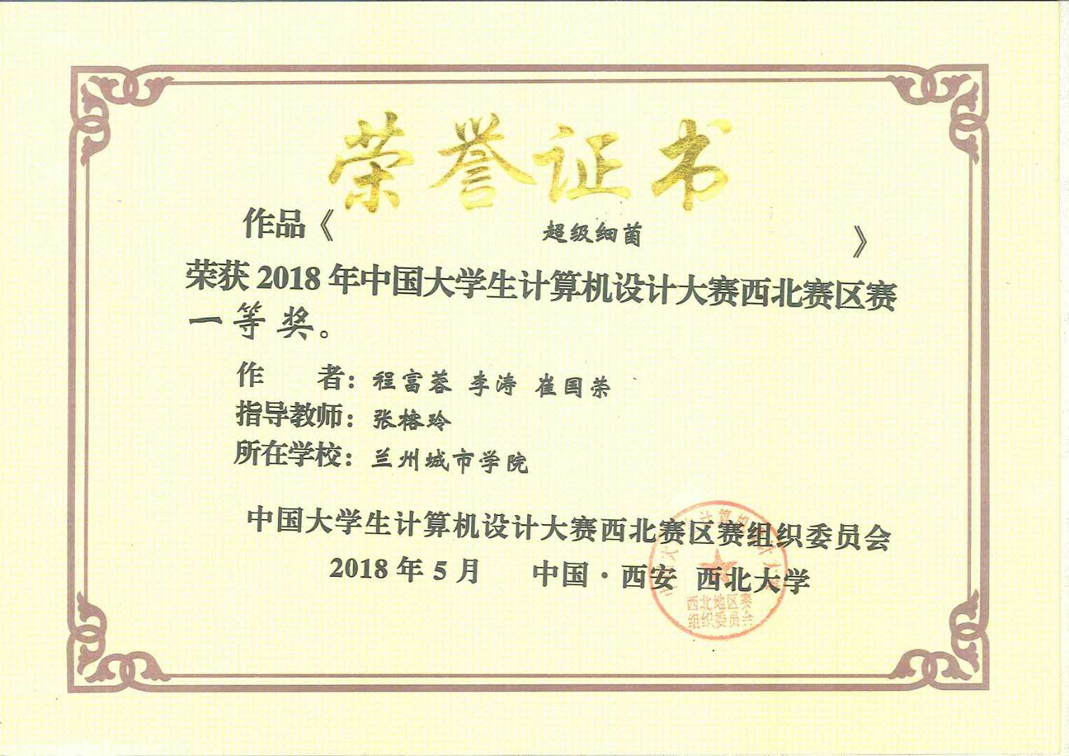 5月12日,2018年中国大学生计算机设计大赛西北赛区决赛在西北大学举办,来自西北五省和西藏自治区的580多个代表队参加了比赛。经过精心准备,beat365教育学院共派出8个队参加比赛,取得了一等奖2项、二等奖4项、三等奖2项、优秀奖2项的好成绩。