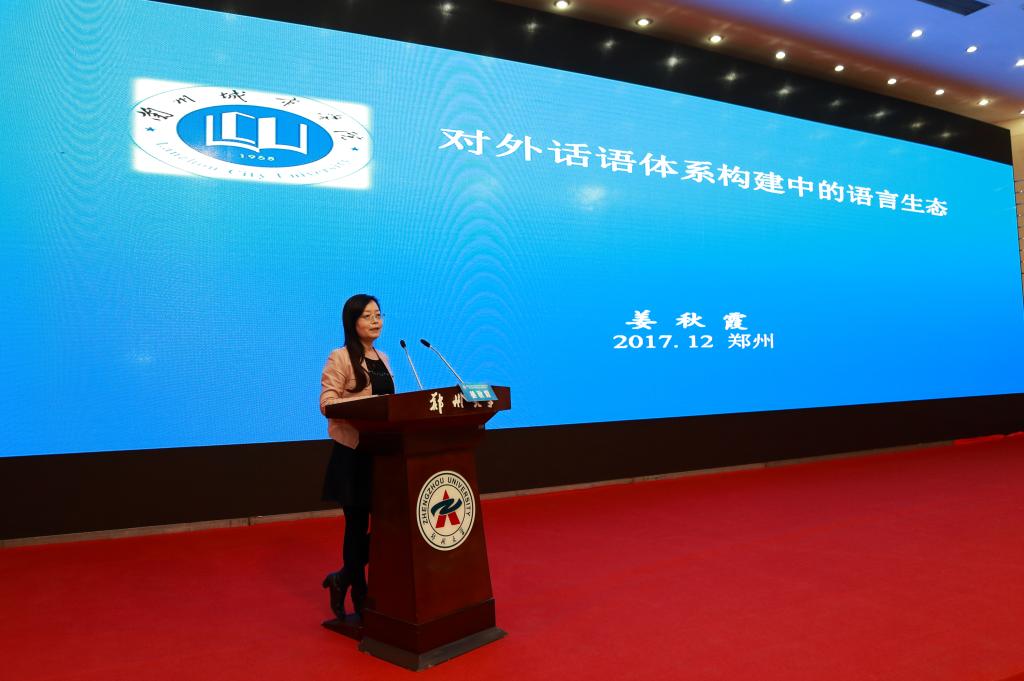姜秋霞教授在中国首届外交话语及外事外交翻译研讨会作主旨报告。