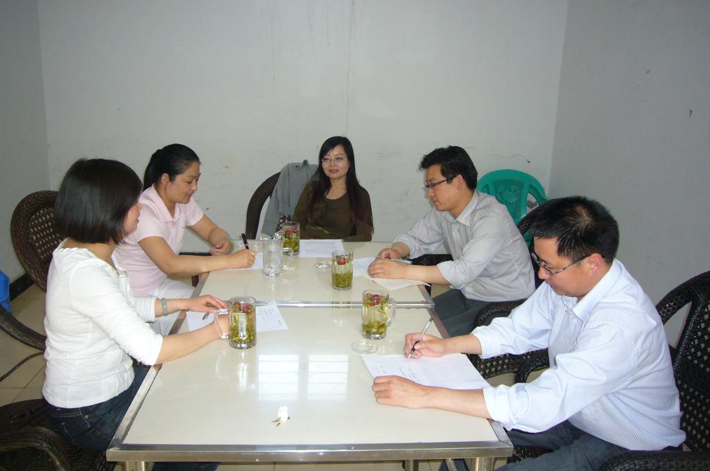 姜秋霞教授与博士生学术讨论(右2为刘全国教授,现任陕西师范大学外国语学院副院长;左2为余婷教授,现任西北师范大学外国语学院副院长)