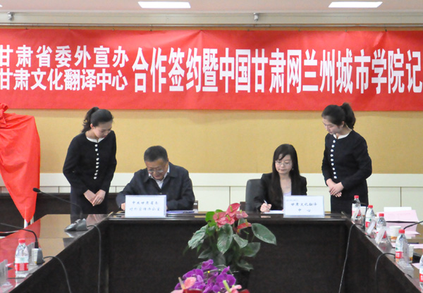 姜秋霞教授与甘肃省委外宣办签订合作协议。