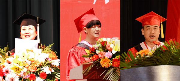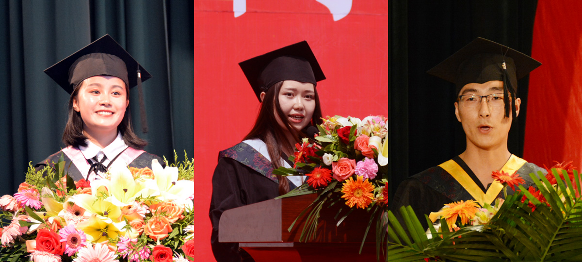 典礼上,幼儿师范学院吴岩老师、文史学院高原教授、外国语学院罗桂保教授代表老师分别发言,向毕业生送去了亲切叮嘱和美好祝愿。幼儿师范学院学前教育专业143班何丹、化学化工学院化学专业142班孙惠、培黎机械工程学院机械设计制造及其自动化141班李亮代表2018届毕业生分别发言,感谢母校的培育之恩,并祝愿母校明天更美好。