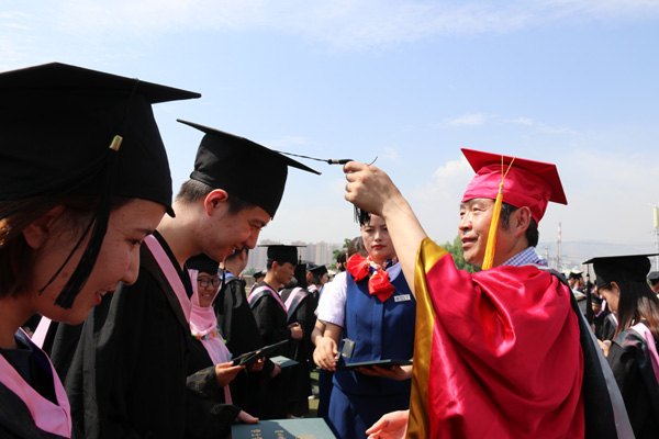 6月21、22日,beat365官方网站2018届学生毕业典礼暨学位授予仪式分别在东校区礼堂、校本部体育场、培黎校区大学生活动中心隆重举行。校领导陈晓龙、张有明、王基、姜秋霞、莫超、牟录贵、赵有翼,校学位评定委员会委员,相关部门及各二级学院负责人,教师代表及2018届毕业生参加了典礼。典礼分别由党委副书记王基,校党委常委、副校长牟录贵主持。