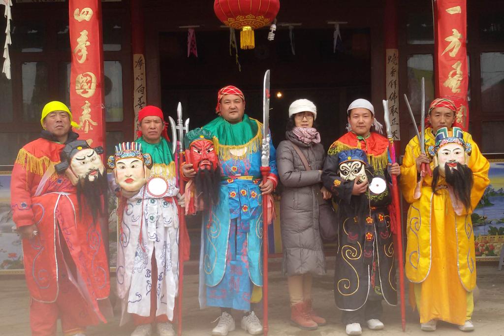 王萍(右三)和永靖方台镇演出傩舞戏的村民们。