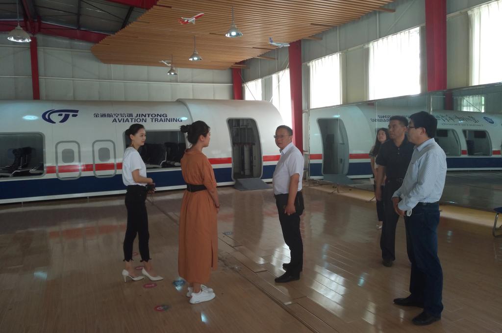 张有明校长在旅游学院了解空乘模拟仓的设备功能。